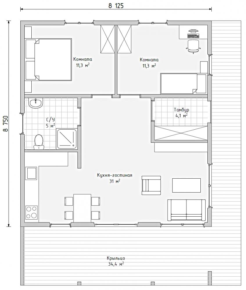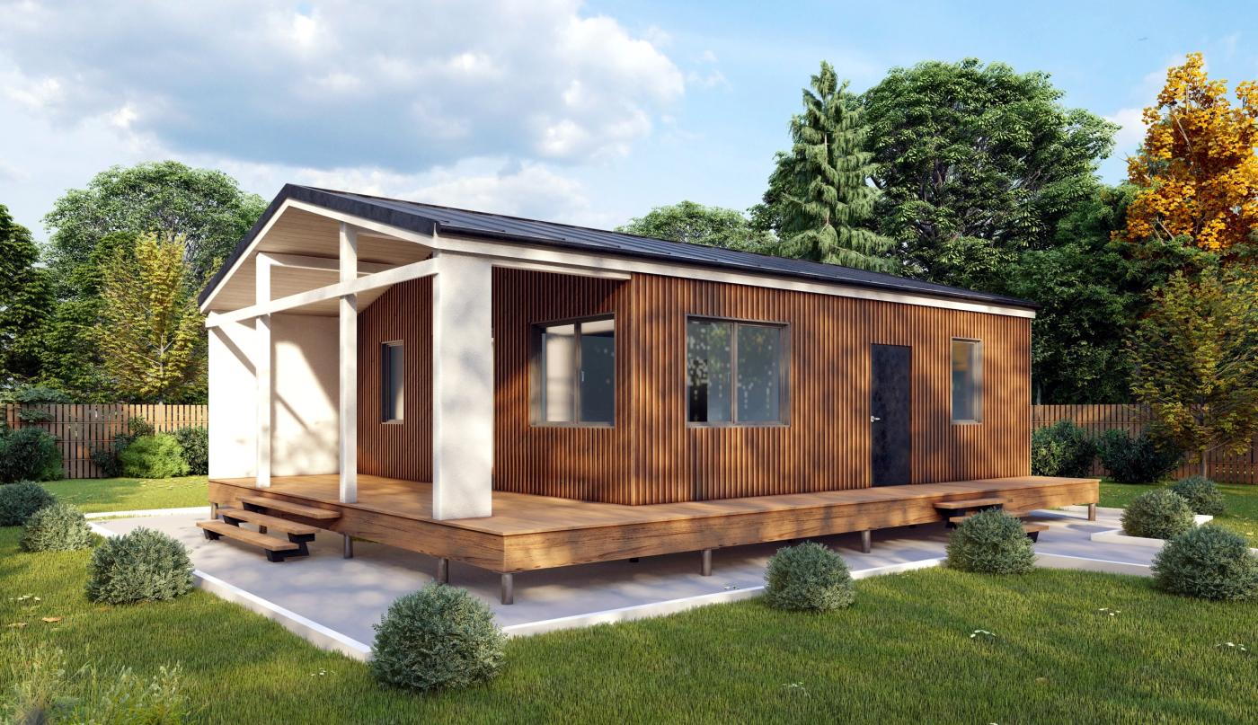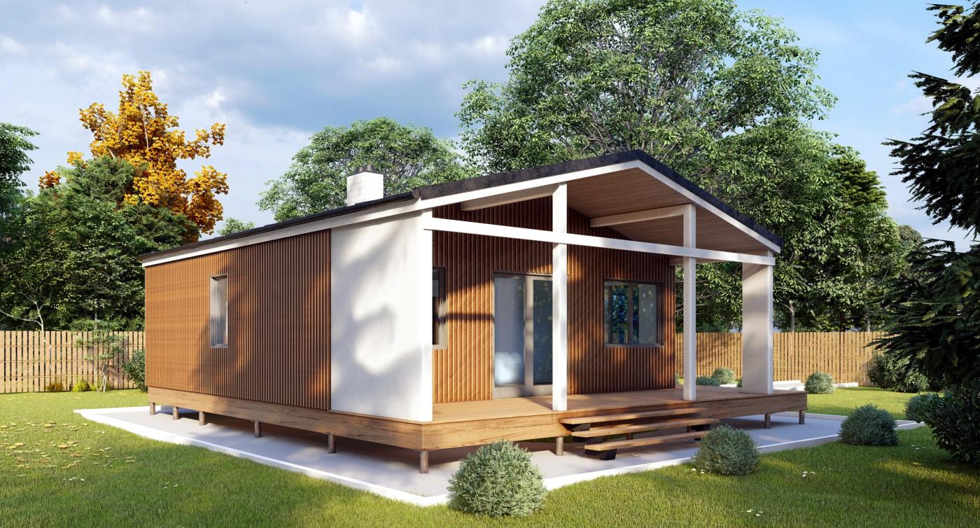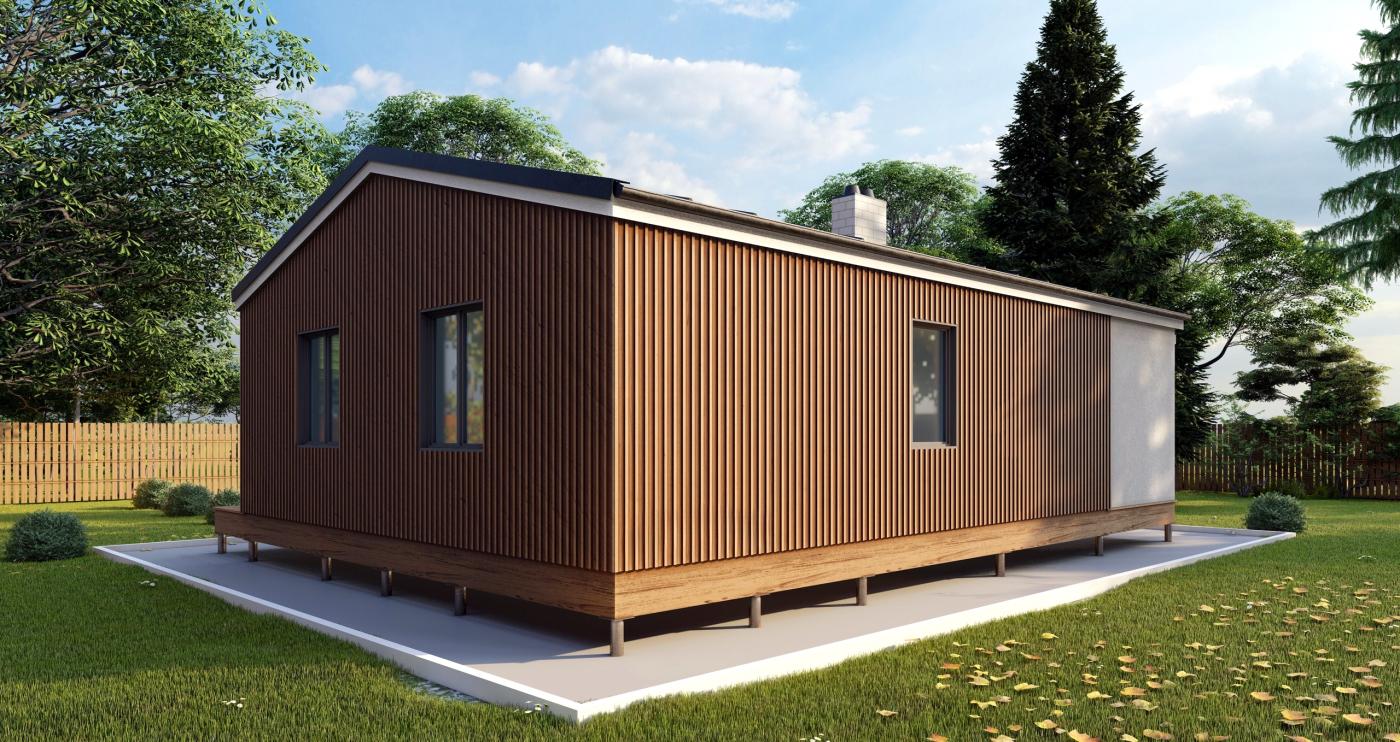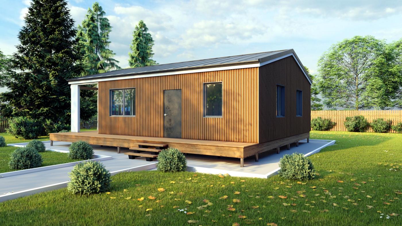 Этот современный дом создается из готовых конструкционных панелей заводского производства, где прочные плиты OSB сочетаются с эффективным утеплителем.