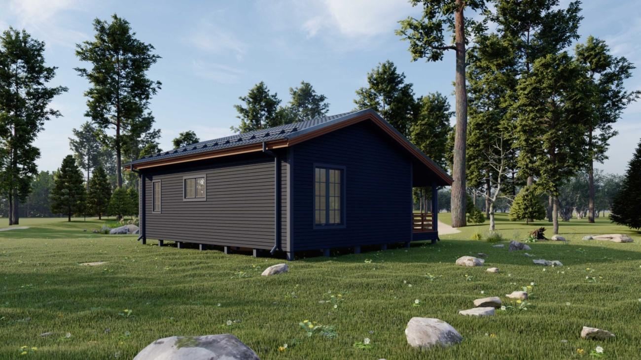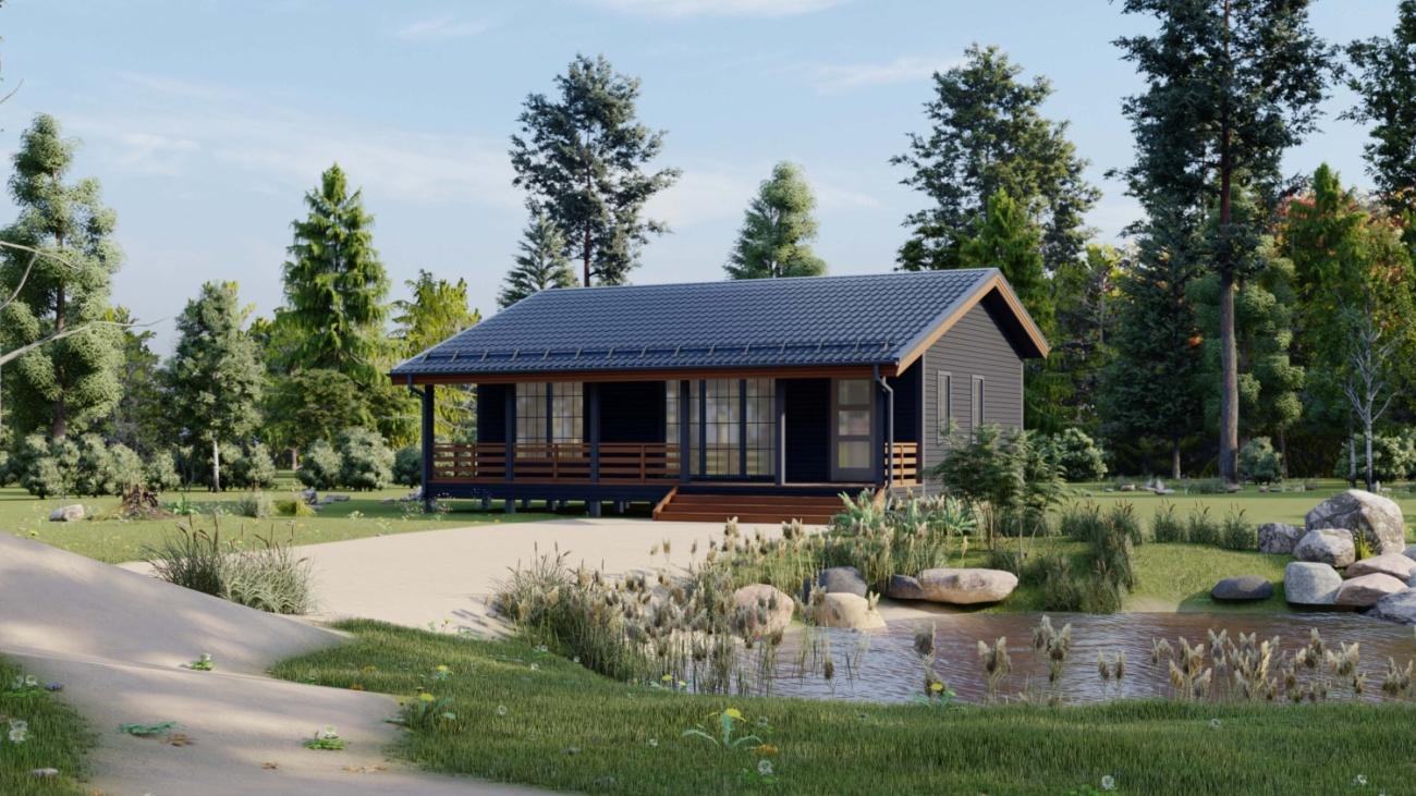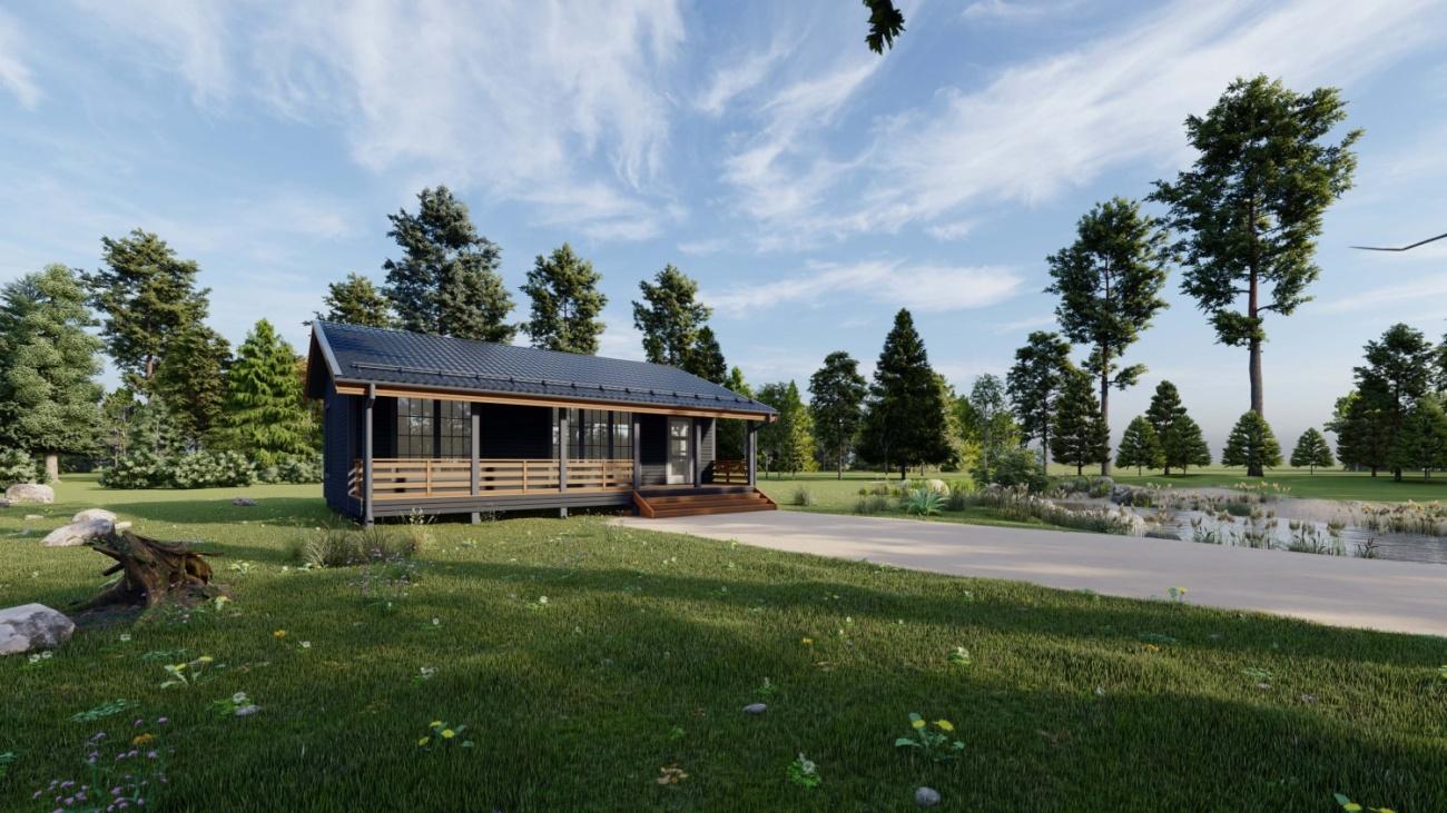 Элегантный одноэтажный дом — истинное воплощение изящества и семейного очага, вмещающий 64 квадратных метра волшебного комфорта и безмятежного покоя.