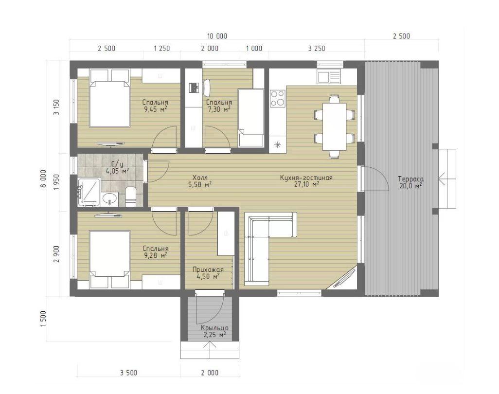 - Внутри — три уютные спальни, раскрывающиеся пространством любви и покоя, словно мягкие объятия после долгого дня.