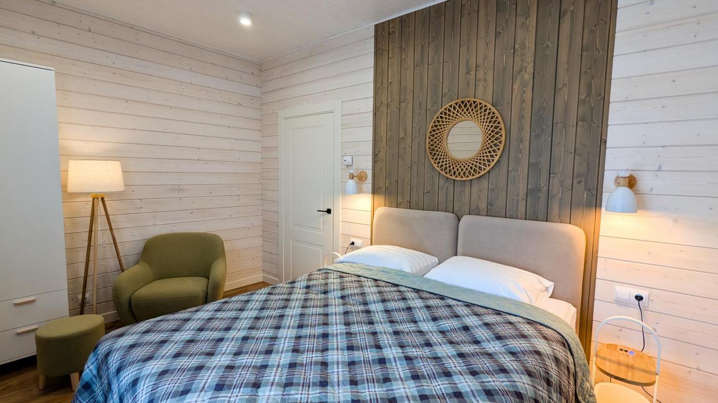 - Внутри — две уютные спальни, раскрывающиеся пространством любви и покоя, словно мягкие объятия после долгого дня.