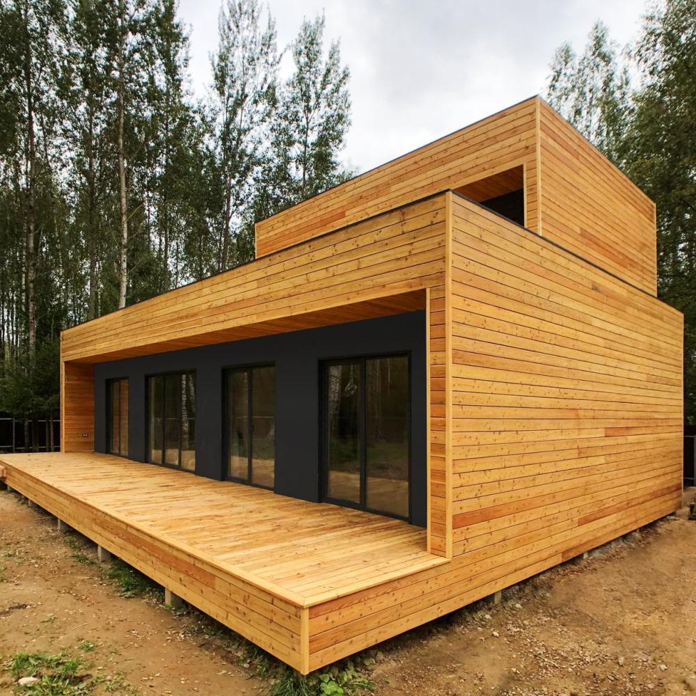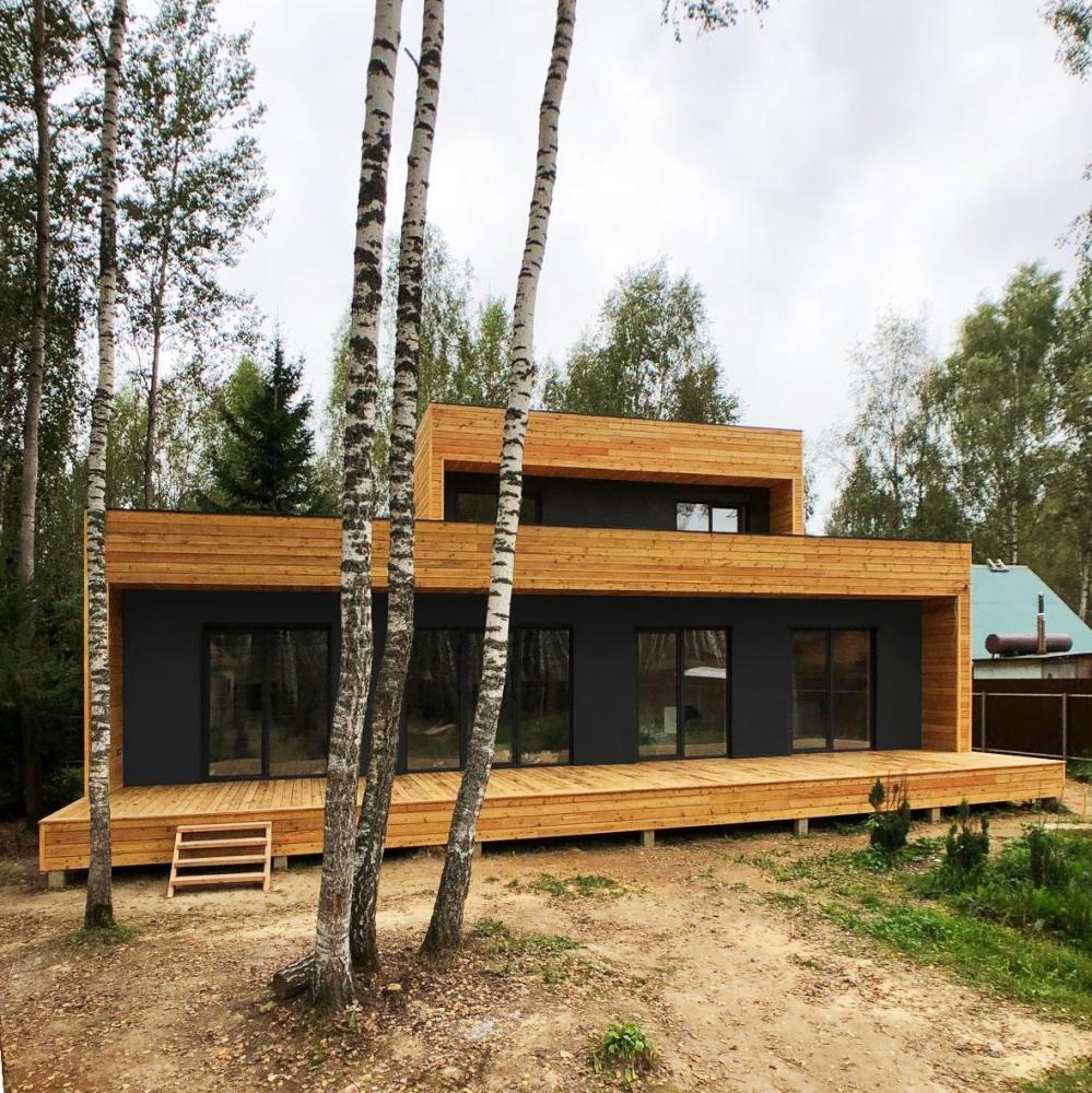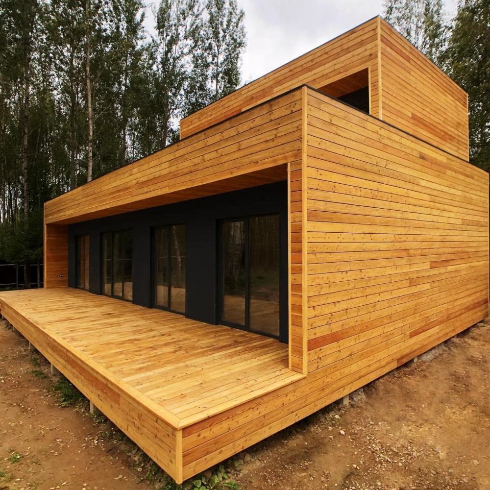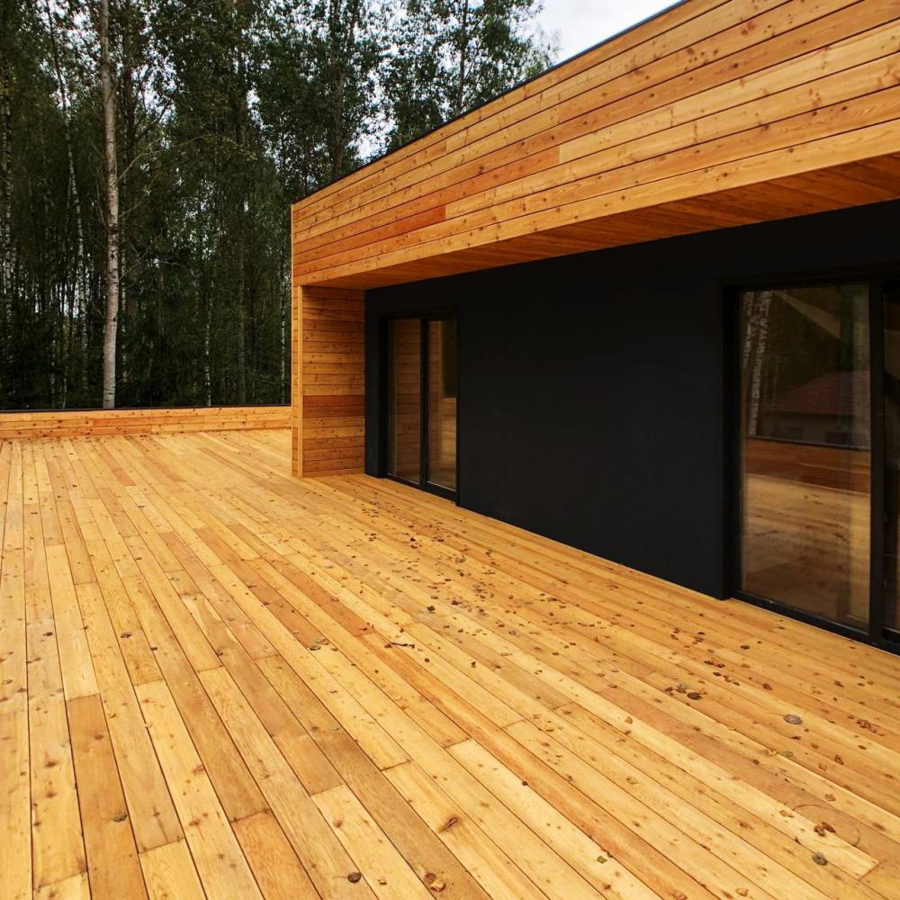 - Фасад, предлагаемый из фиброцементного сайдинга — имитация дерева: вечный, не требующий покраски, он всегда сияет свежестью. Достаточно легкой помывки керхером, чтобы ваш дом выглядел безупречно, как в первый день, сохраняя свою первозданную красоту под любым небом.