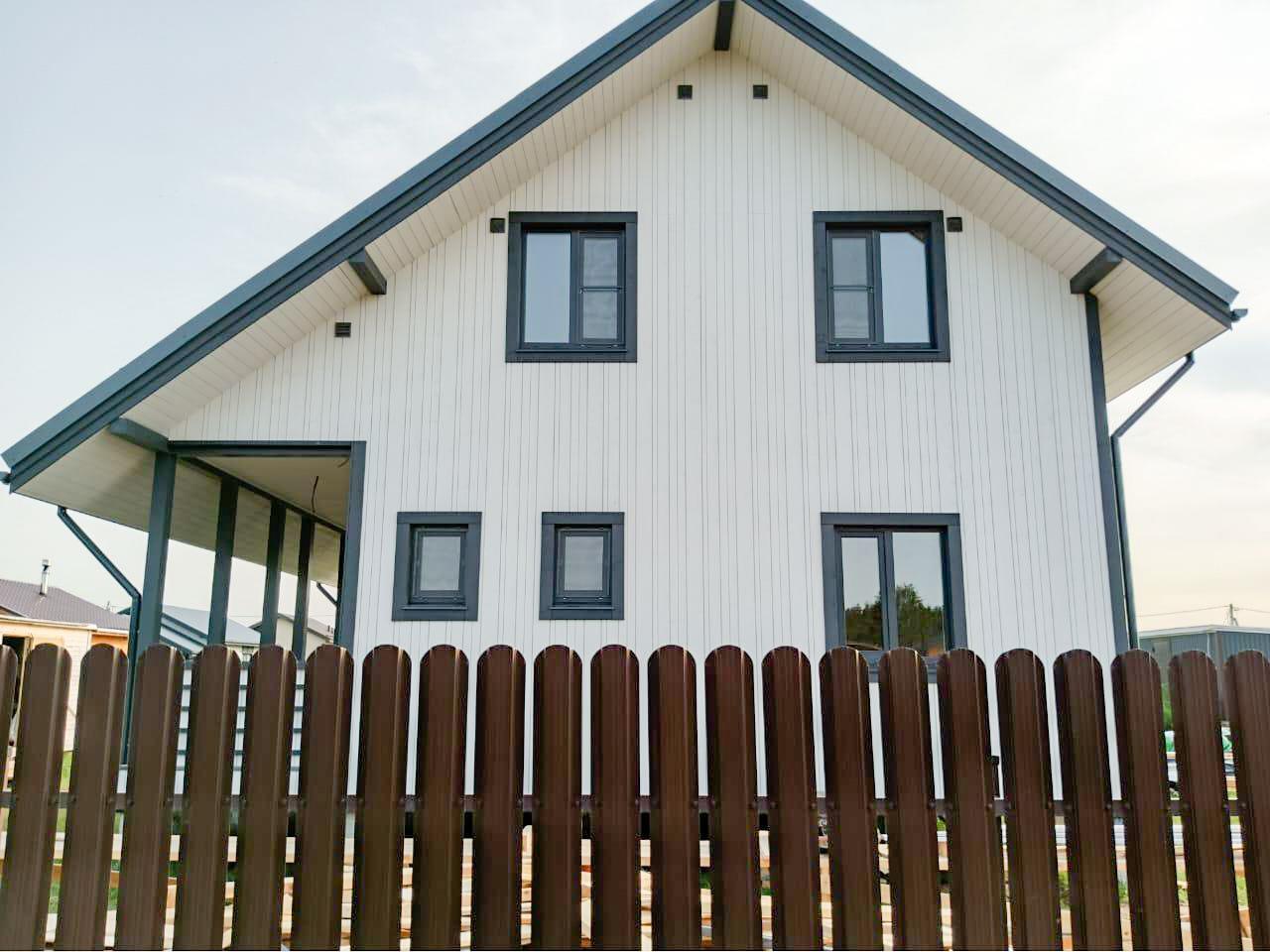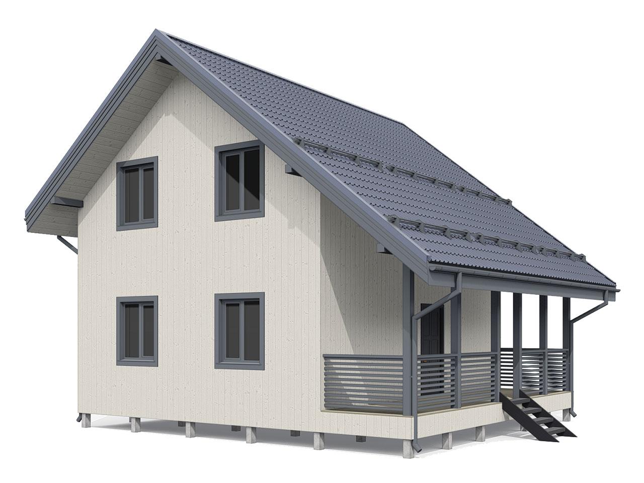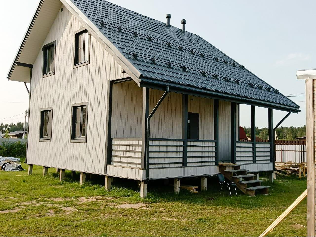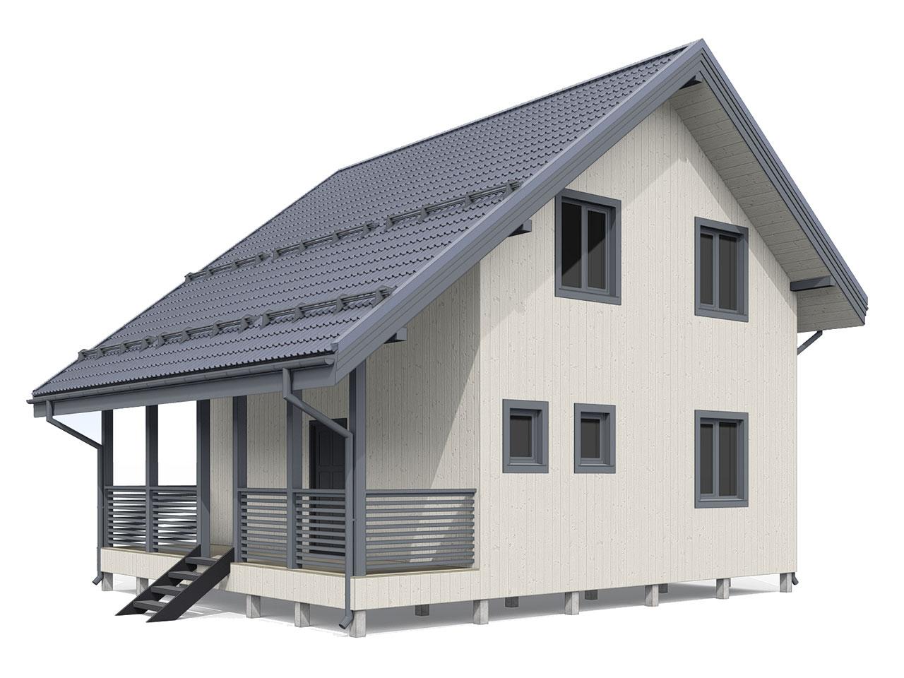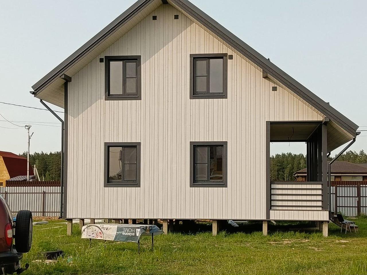 Этот современный дом создается из готовых конструкционных панелей заводского производства, где прочные плиты OSB сочетаются с эффективным утеплителем.