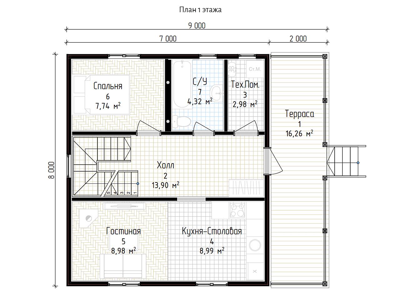 Особое внимание уделено соединению элементов — для этого используется древесина камерной сушки, что гарантирует устойчивость и долговечность конструкции.
