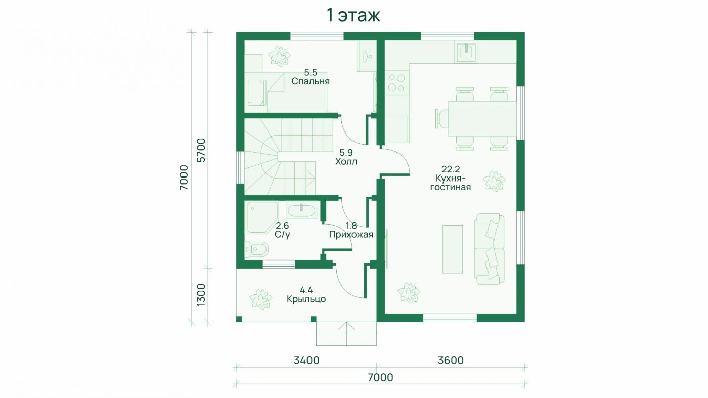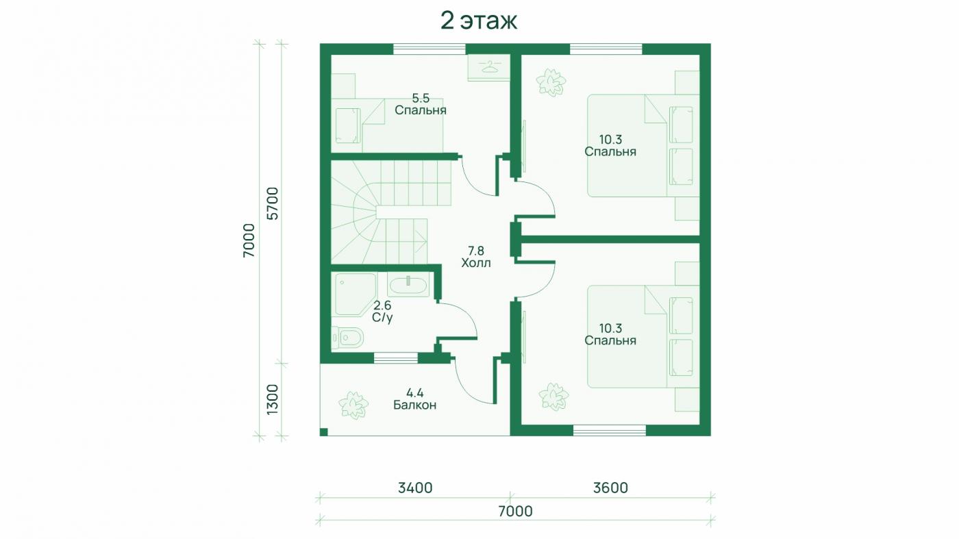 • Полезная площадь дома 58 м²