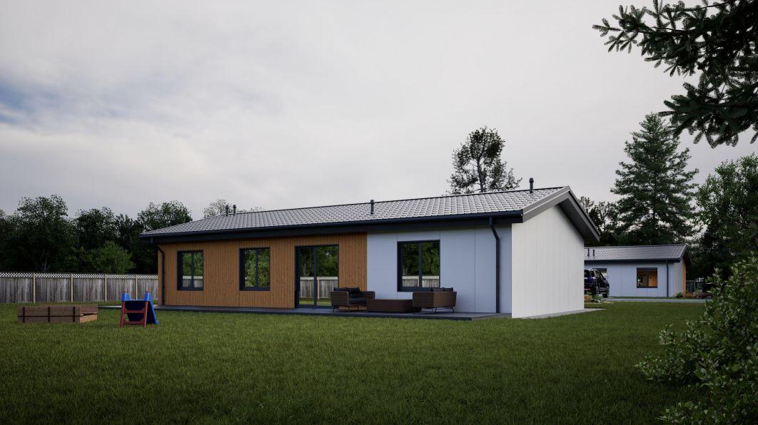 Изящный дом с двускатной кровлей, вмещающий 142 квадратных метров гармонии и комфорта — это воплощение современной мечты о уюте.